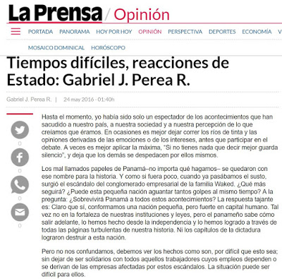 Los mal llamados papeles de Panamá–no importa qué hagamos– se quedaron con ese nombre para la historia. Y como si fuera poco, cuando ya pasábamos el susto, surgió el escándalo del conglomerado empresarial de la familia Waked. ¿Qué más seguirá? ¿Puede esta pequeña nación aguantar tantos golpes al mismo tiempo? A la pregunta: ¿Sobrevivirá Panamá a todos estos acontecimientos? La respuesta tajante es: Claro que sí, conformamos una nación pequeña, pero fuerte en capital humano. Tal vez no en la fortaleza de nuestras instituciones y leyes, pero el panameño sabe cómo salir adelante, lo hemos hecho desde la independencia y lo hemos logrado a través de todas las páginas turbulentas de nuestra historia. Ni los capítulos de la dictadura lograron destruir a esta nación.