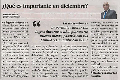 ¿Por qué puede ser así?, porque es la época del año donde el consumismo desenfrenado aparece y donde muchos caen en la manía destructiva de comprar sin pensar que enero es el mes que sigue a diciembre y es cuando lo poco que recibiste por ahorros o bonificaciones desaparece y tienes que hacerles frente a las deudas nuevamente.