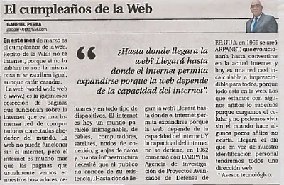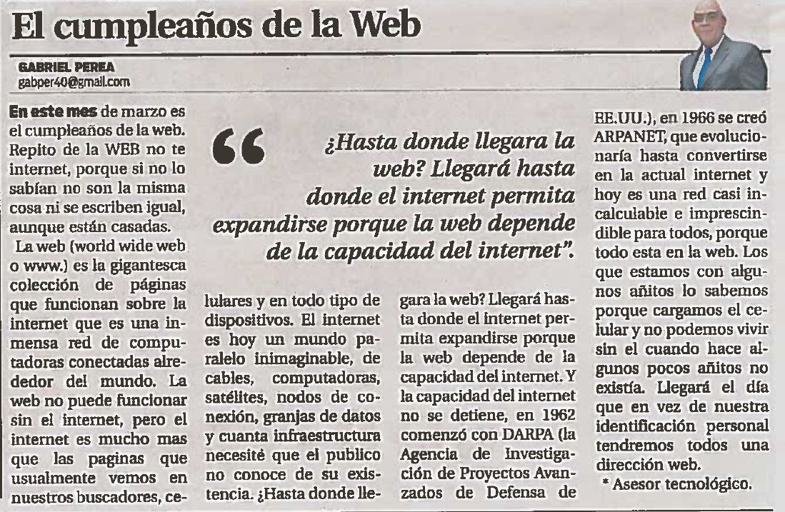 Por: Gabriel J. Perea R. @elistmopty En este mes de marzo es el cumpleaños de la web. Repito de la WEB no de internet, porque si no lo sabían.. leer articulo completo en Metro Libre: https://buff.ly/2VTzKZu