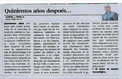 Quinientos años después el gobierno donde ocurrieron todas esas cosas pudiese ser que se convierta en opción para regresar al poder por el apoyo de los ciudadanos que quinientos años después aun tambalean en entender cómo construir su propio destino como nación. ¿Faltarán otros quinientos años para que los ciudadanos de Panamá dejen de ser indiferentes?
