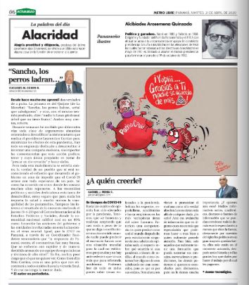 En tiempos de COVID-19 hasta los escritos de opinión han sido afectados por la pandemia. Tenemos que ser honestos y realistas aceptando que casi nada o poco de lo que se diga o escriba tiene mucho sentido cuando nadie puede predecir el escenario futuro ante una situación mundial para la cual no estábamos preparados y no hay antecedentes que sirvan más que para referencia académica.