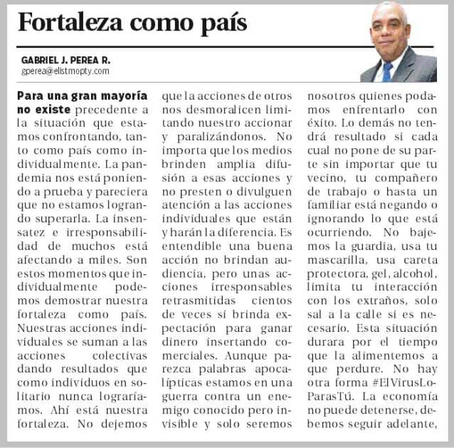 Son estos momentos que individualmente podemos demostrar nuestra fortaleza como país. Nuestras acciones individuales se suman a las acciones colectivas dando resultados que como individuos en solitario nunca lograríamos.