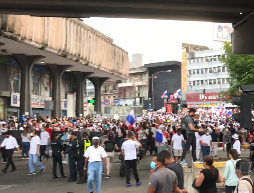 Tenemos que levantarnos, con ese entusiasmo decide con un camarógrafo improvisado acudir. Al llegar me sorprendió no ver a los cuatro gatos que esperaba encontrar, por el contrario, había gente, no una marejada como la marea roja, pero mucho mas de lo que esperaba. Para que no me echarán cuentos camine entre la multitud, quería ver quienes estaban ahí. Había de todo, no me vengan con cuento, había gente que parecían “rabiblancos”, había gente que parecían pobres, había gentes que parecían humildes, había gentes que parecían gentes, había gentes que parecían panameños. Y en ese momento comenzó a sonar el himno que hace que se inflame el corazón de patriotismo, Patria de Rubén Blades.