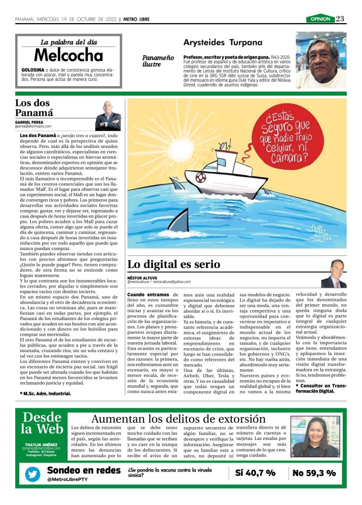 Los dos Panamá o ¿serán tres o cuatro?, todo depende de cuál es la perspectiva de quien observa. Pero, más allá de los análisis sesudos de algunos catedráticos, especialistas en ciencias sociales o especialistas en hiervas aromáticas, denominados expertos en opinión que se desconoce dónde adquirieron semejante titulación, existen varios Panamá.