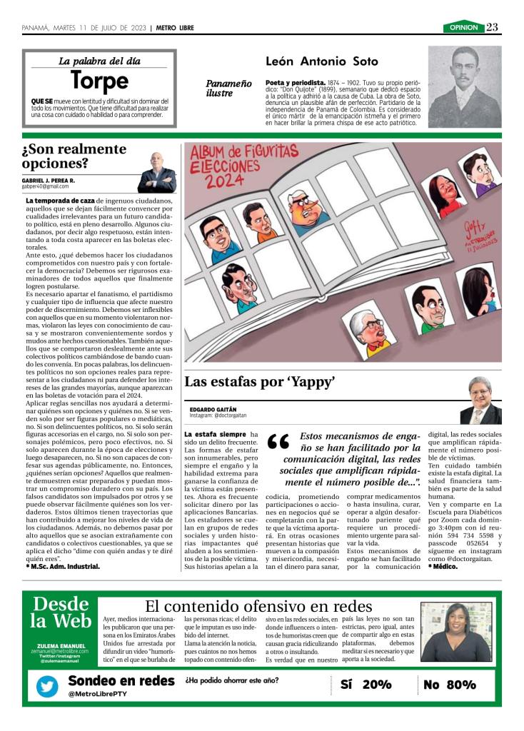 Es necesario apartar el fanatismo, el partidismo y cualquier tipo de influencia que afecte nuestro poder de discernimiento. Debemos ser inflexibles con aquellos que en su momento violentaron normas, violaron las leyes con conocimiento de causa y se mostraron convenientemente sordos y mudos ante hechos cuestionables. También aquellos que se comportaron deslealmente ante sus colectivos políticos cambiándose de bando cuando les convenía. En pocas palabras, los delincuentes políticos no son opciones reales para representar a los ciudadanos ni para defender los intereses de las grandes mayorías, aunque aparezcan en las boletas de votación para el 2024.