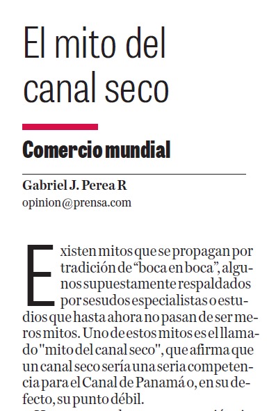 Existen mitos que se propagan por tradición de “boca en boca”, algunos supuestamente respaldados por sesudos especialistas o estudios que hasta ahora no pasan de ser meros mitos. Uno de estos mitos es el llamado “mito del canal seco”, que afirma que un canal seco sería una seria competencia para el Canal de Panamá o, en su defecto, su punto débil.