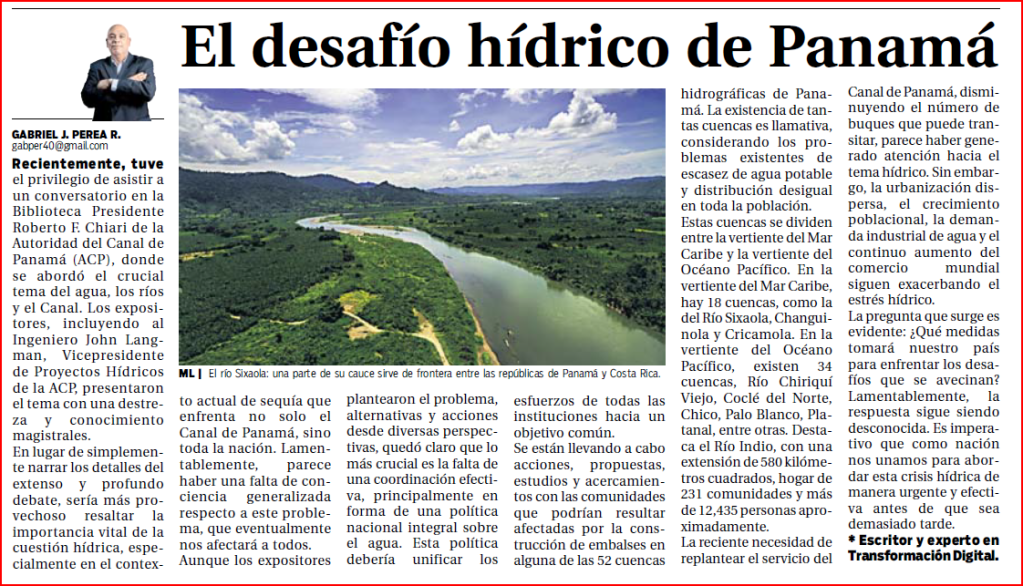 Recientemente, tuve el privilegio de asistir a un conversatorio en la Biblioteca Presidente Roberto F. Chiari de la Autoridad del Canal de Panamá (ACP), donde se abordó el crucial tema del agua, los ríos y el Canal. Los expositores, incluyendo al Ingeniero John Langman, Vicepresidente de Proyectos Hídricos de la ACP, presentaron el tema con una destreza y conocimiento magistrales.
